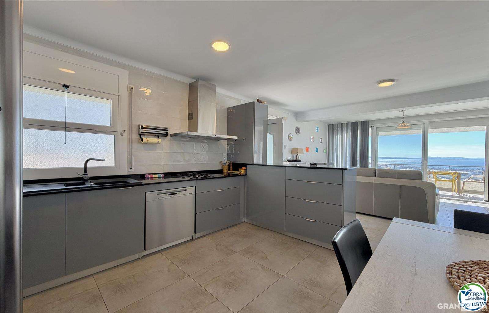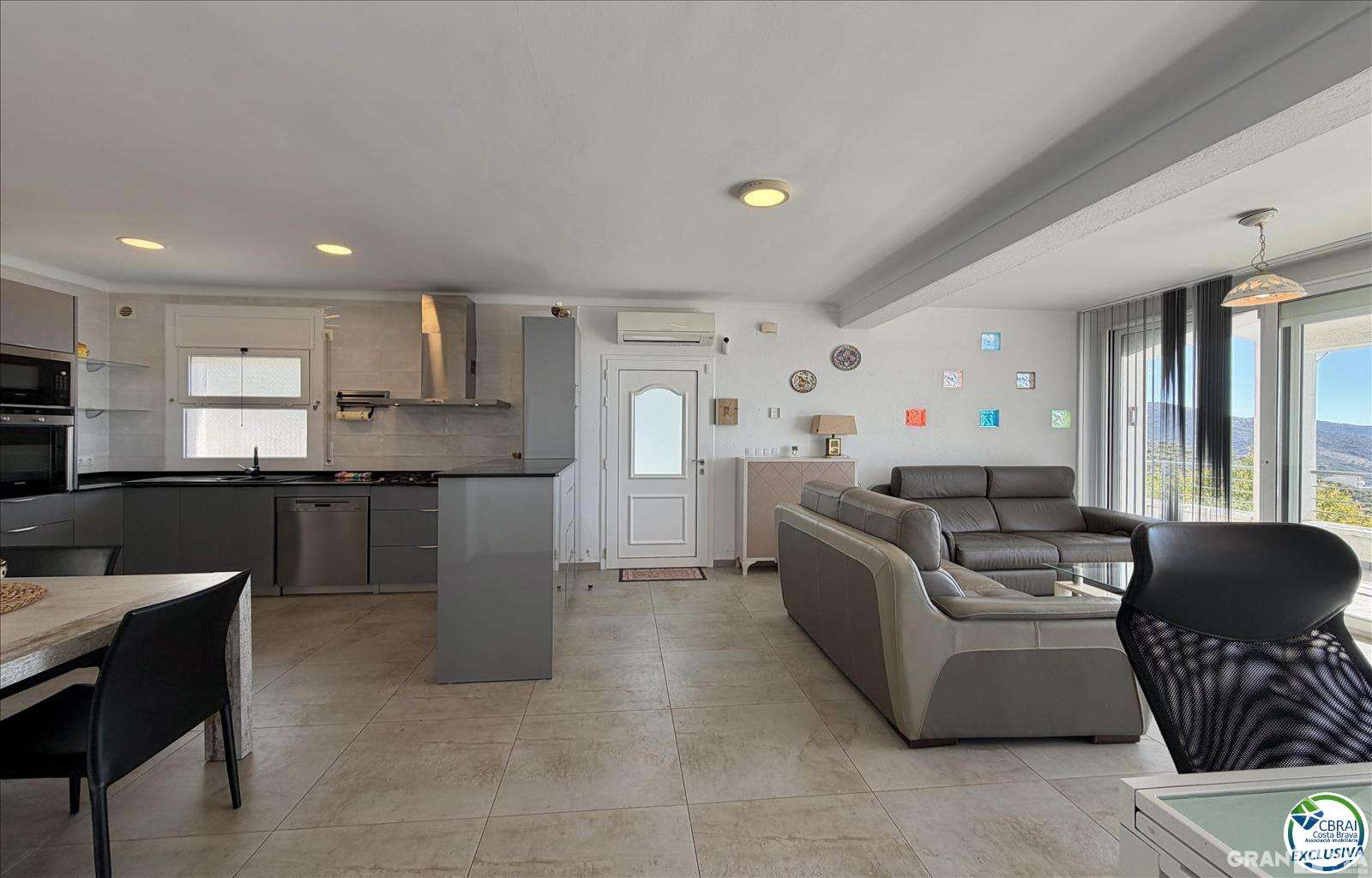 Amplio salón-comedor con cocina americana completamente equipada, ideal para compartir momentos en familia o con amigos.