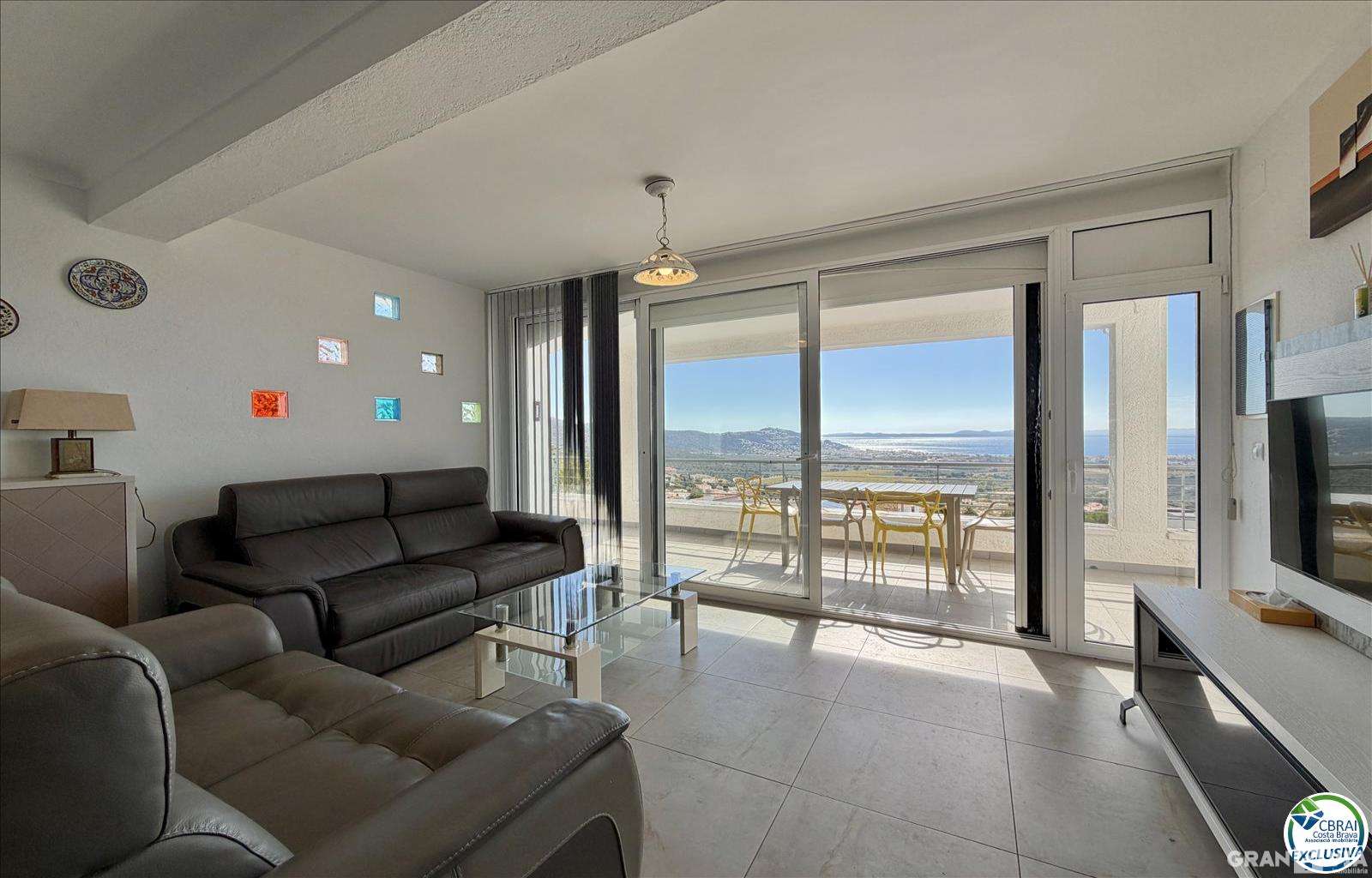 Terraza semi-cubierta con vistas impresionantes sobre la bahía: el lugar perfecto para relajarse o disfrutar de una cena al atardecer.