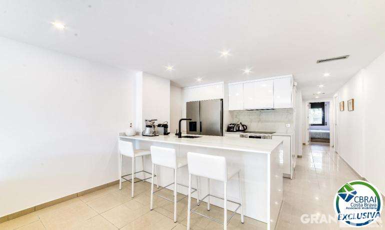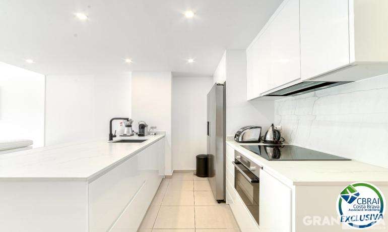 Découvrez cet appartement exclusif en rez-de-chaussée, situé dans un immeuble de 2007 en première ligne de mer, dans le quartier de Salatar (Roses). Entièrement rénové dans un style moderne et élégant, il offre une atmosphère chaleureuse et contemporaine, idéale pour profiter de la Méditerranée tout au long de l’année.